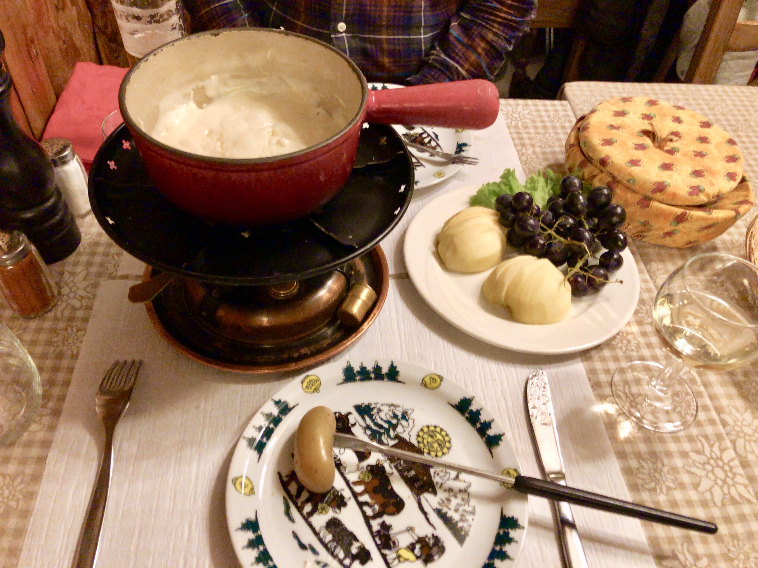 この日の夕食は、”スイス”と聞いてやはり外せないチーズフォンデュを食べることにしていた。
